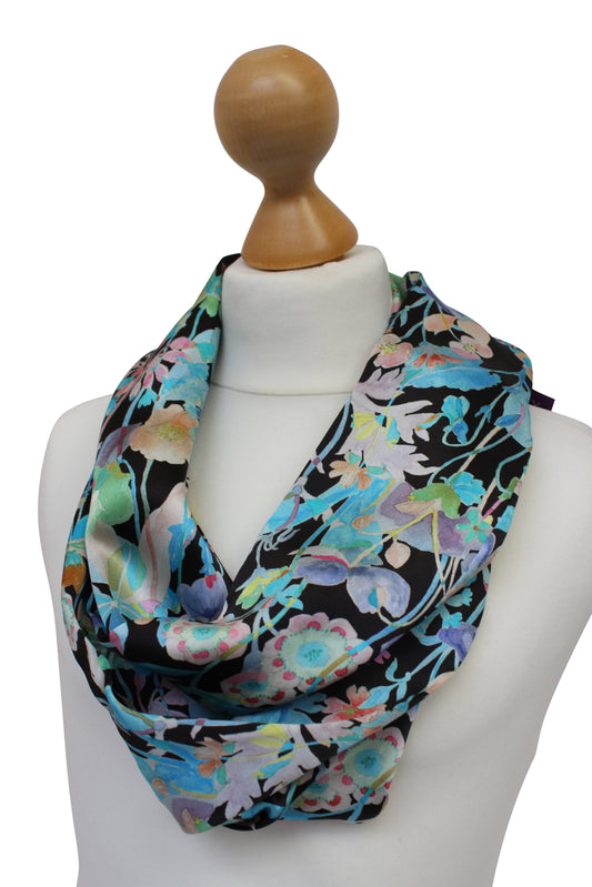 Sold outBlack Multi Colour Silk Satin Scarf