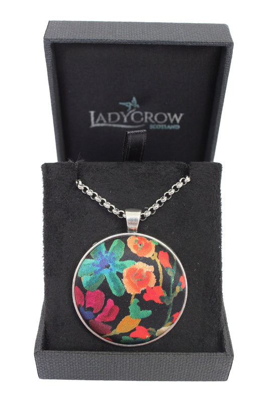 Silk Satin Black Floral Pendant