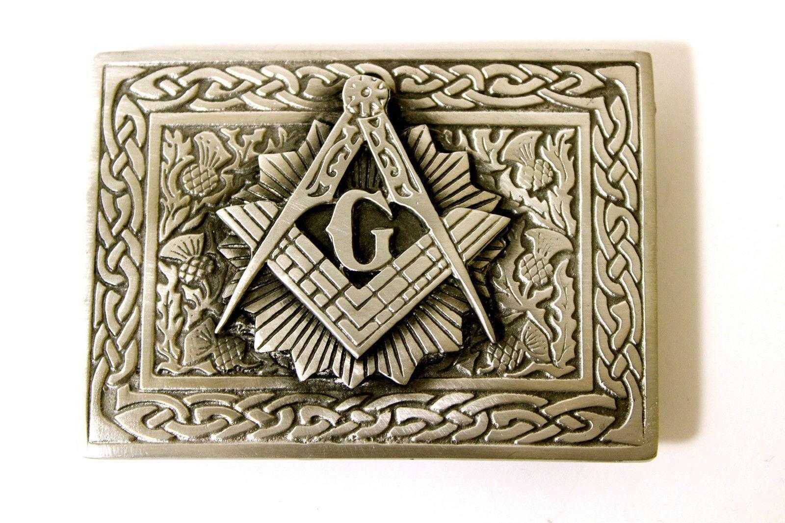 A masonic Buckle with a central raised Masonic Motif