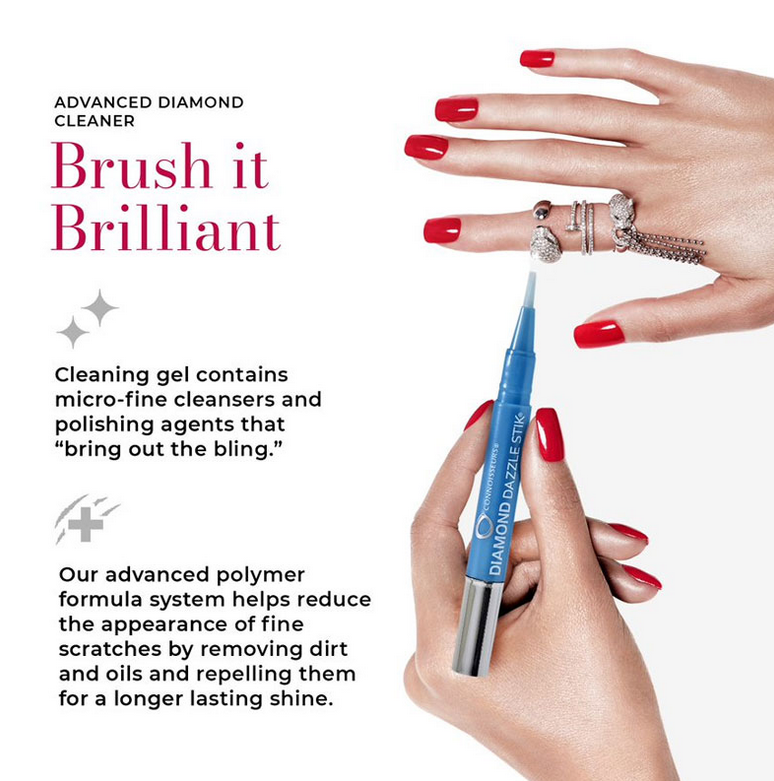 Diamond Dazzle Stik’s jewellery cleaning gel contains micro-fine cleansers and polishing agents that bring radiance and luster to diamonds.