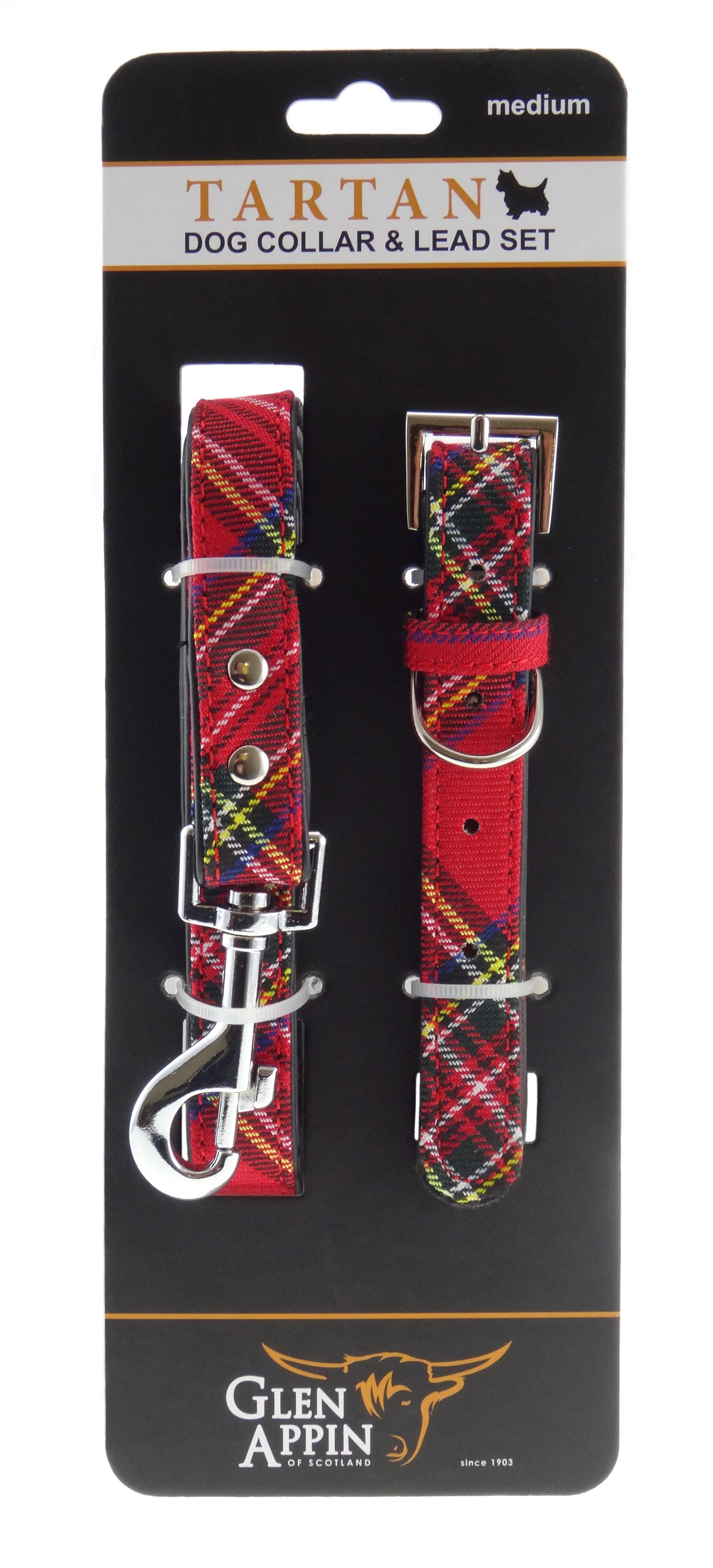 This tartan dog collar and lead set is manufactured from a lovely strong and secure fabric over a man made leather core and secured with high quality bonding and stitching.