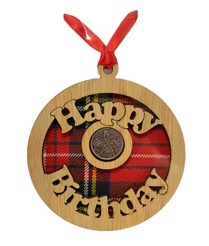 Birthday Lucky Sixpence - 3 Tartans