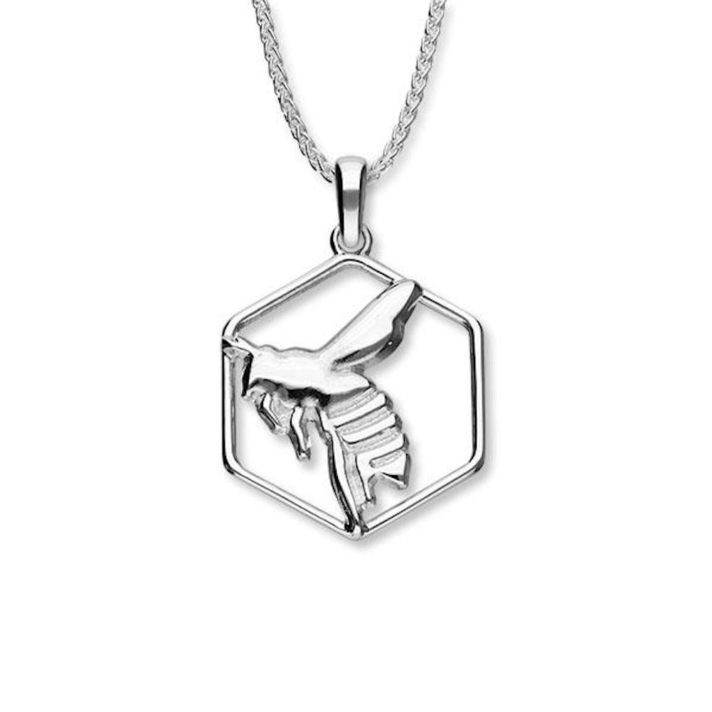 This detailed pendant is crafted in sterling silver and features the Honey Bee within a single honeycomb shape.