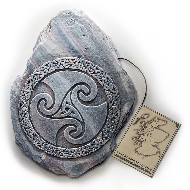 Based on the ancient Celtic symbol of the triple spiral, this wall plaque combines the age old fascination with spiral designs with a traditional Celtic band to produce a beautiful wall plaque with the qualities of an original piece of hand carved celtic art.