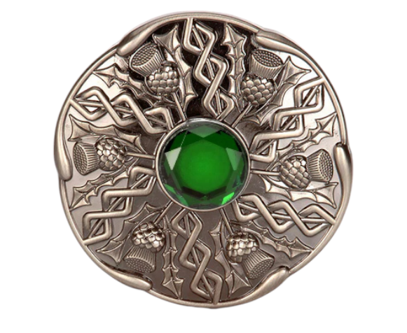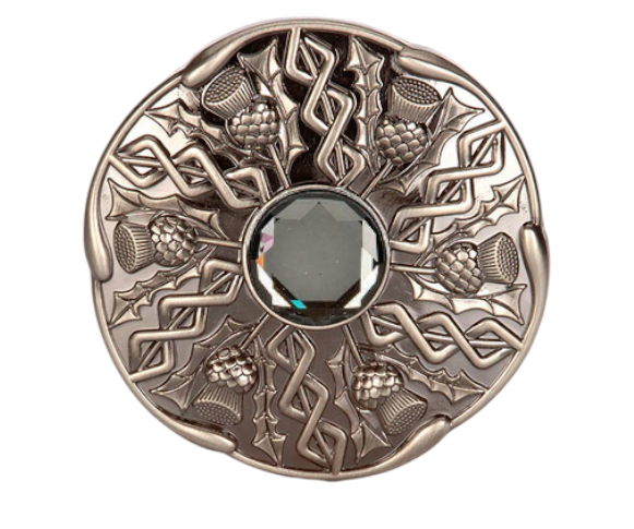 Celtic Thistle Stone Plaid Brooch - Brushed Antique Finish