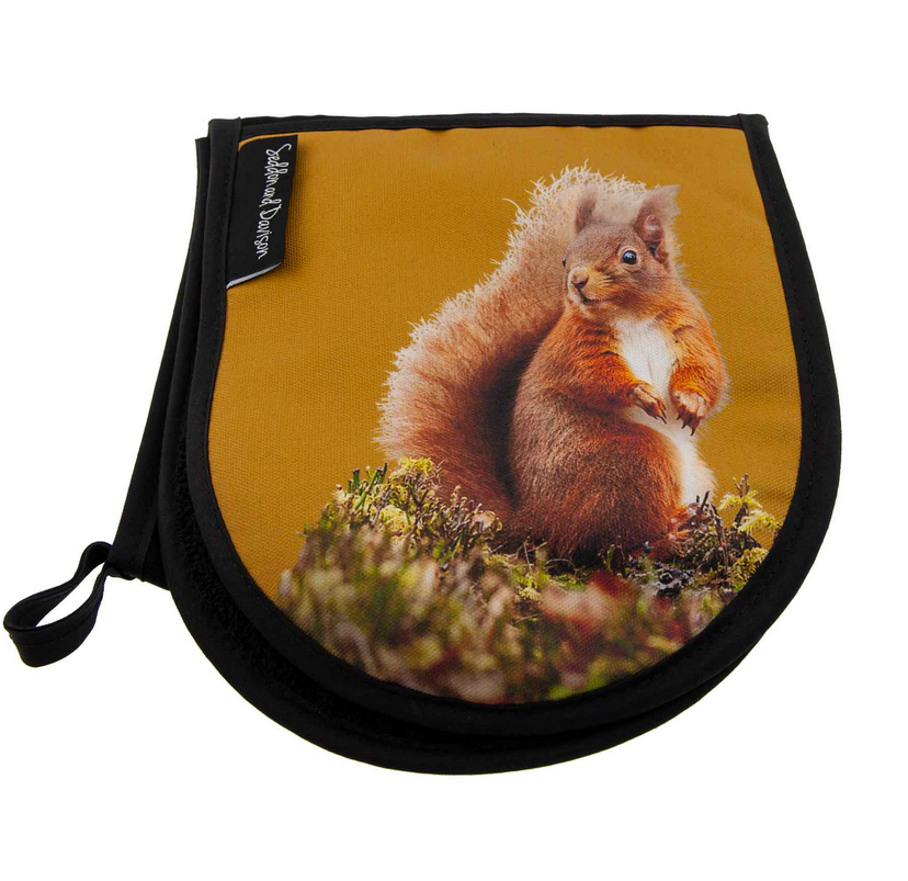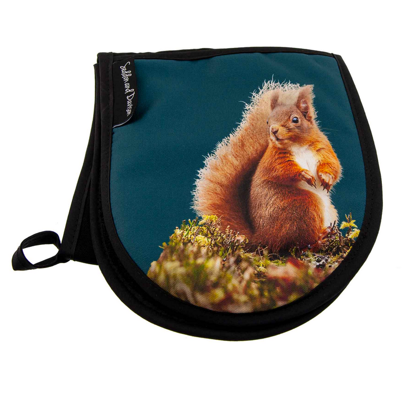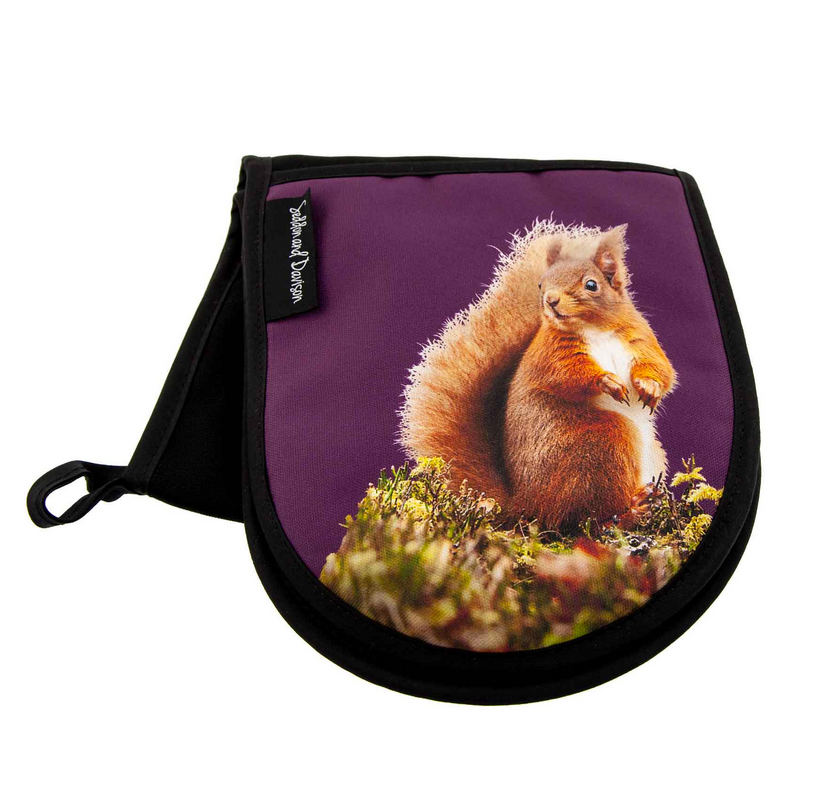 Perfect double oven gloves for your cooker - the cheeky red squirrel design comes on either an ochre, mulberry, or teal green background colour.