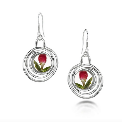 These Sterling Silver Miniature Rose Swirl Earrings beautifully capture the romance of real flowers, making them the perfect Valentine's Day gift. Each earring features a preserved miniature rose, symbolizing love and passion, encased in clear resin and framed by a swirling sterling silver design. Handmade with care, these earrings add a touch of elegance and meaning to any outfit. Presented in a luxury gift box, they are a heartfelt way to show your love on Valentine's Day or any special occasion.