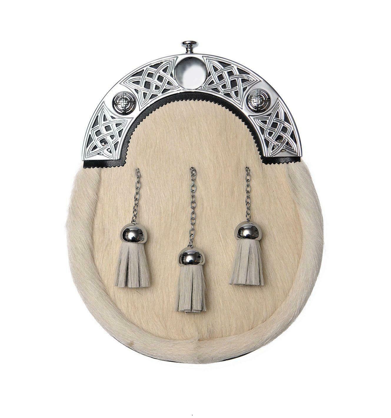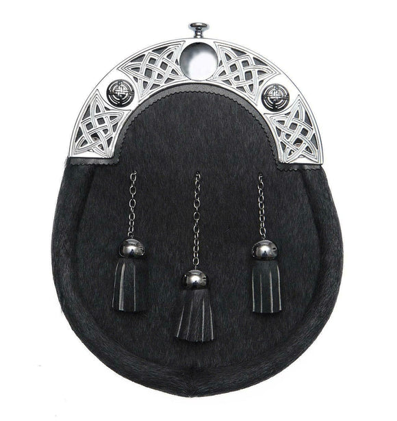 Bovine Dress Sporran Polished Chrome Celtic Cantle