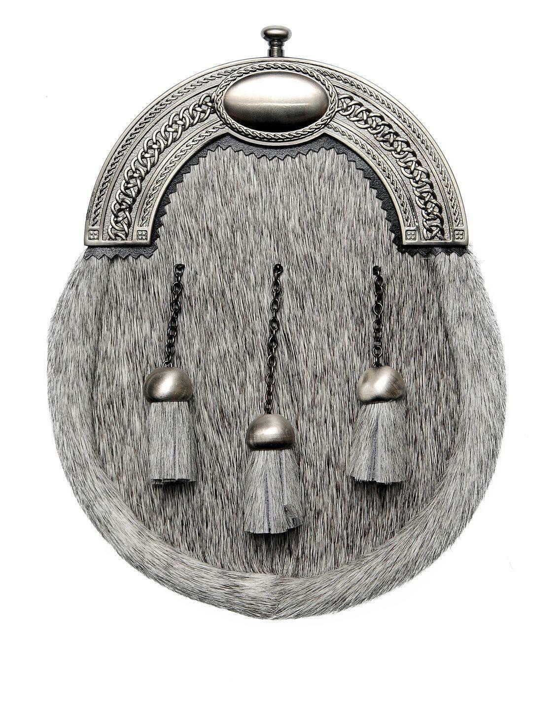 Stunning Grey Bovine Full Dress Sporran Traditional Celtic Design Cantle