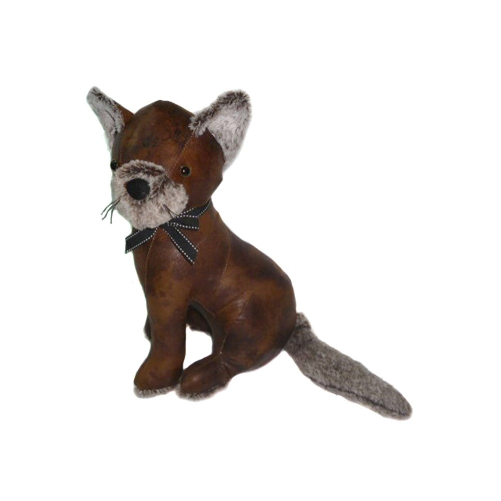 Compliment rustic home interiors with this brown faux leather cat doorstop featuring faux fur accents.