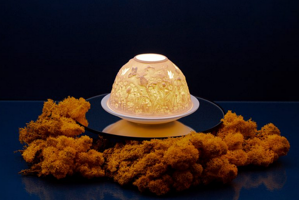 Consisting of a dome shaped cover with a ventilation hole on top and a plate to place the tea light candle;